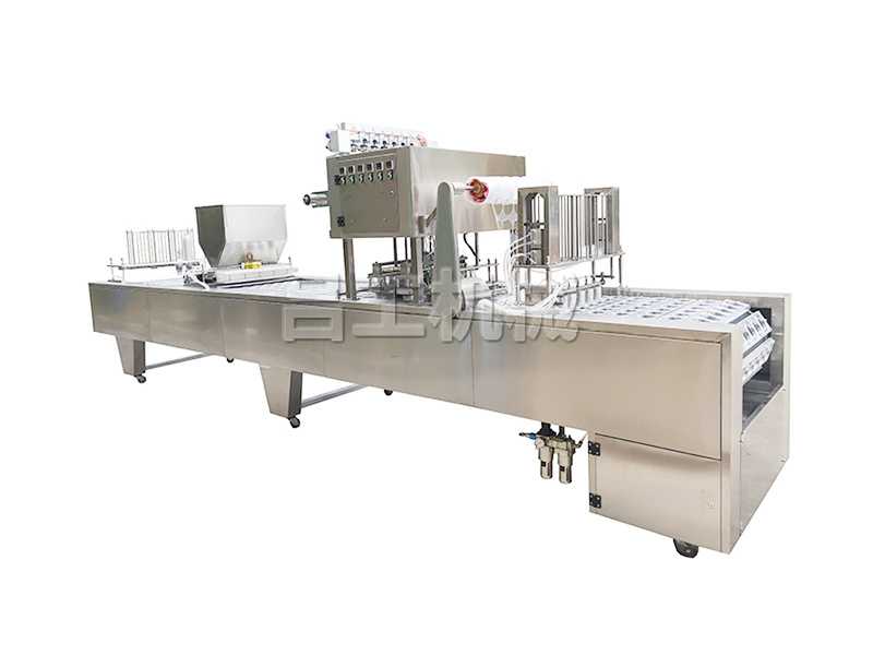 铝箔杯灌装封口机适用于各种盒装产品的包装,能自动落盒、充填水、充填物料、紫外线消菌、光电定位、两次气动热封、自动剪切及整列出盒等功能。整机可采用编程逻辑控制器、气动控制元件、智能数显温度控制系统,具有封口强度高,密封性好,故障率低等特点,是企业自动化生产的良好产品,按照客户要求可以定做特殊规格的机器。